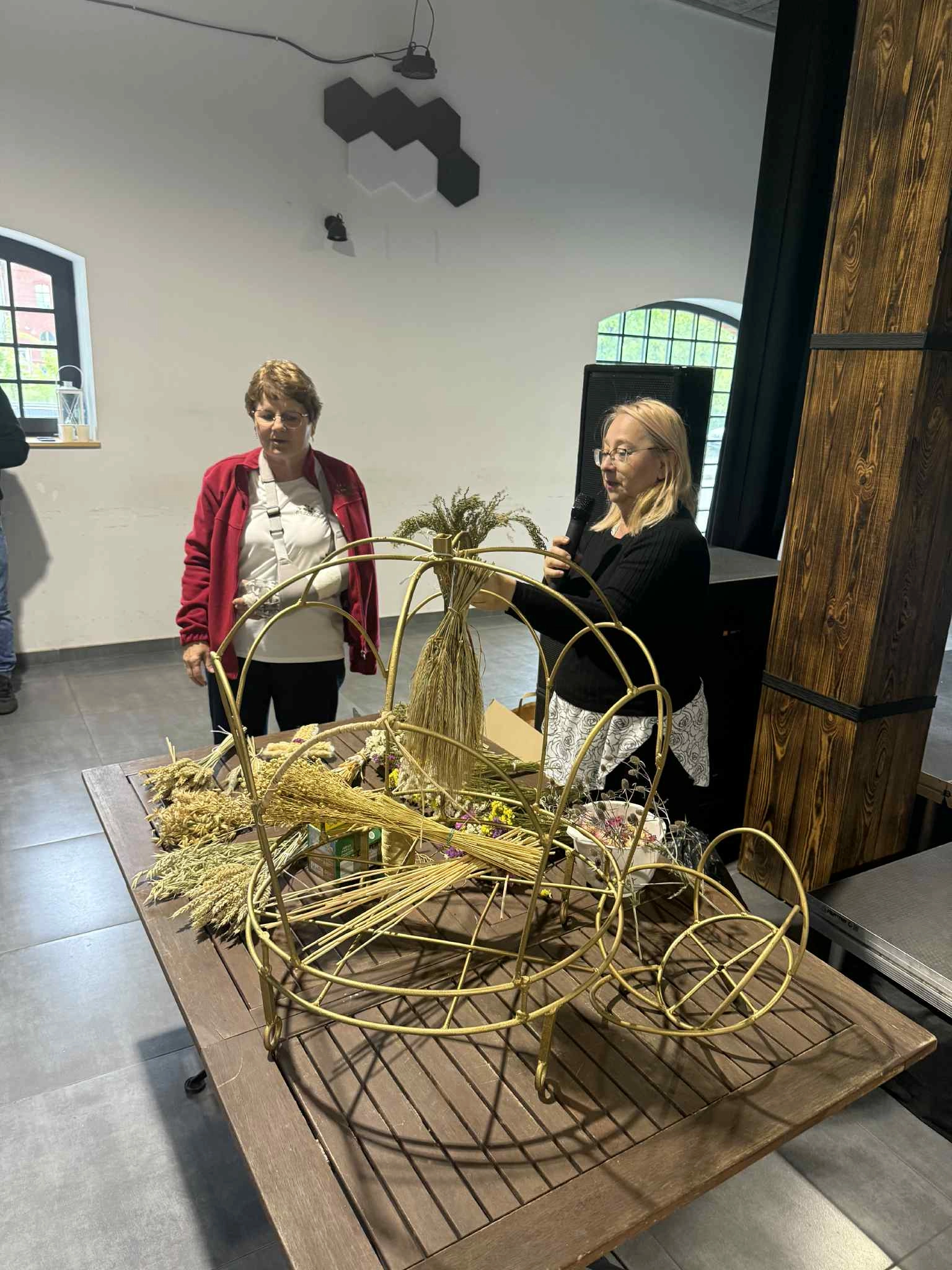 📅 17 maja 2025 roku w magazynie GS w Mogilnie odbyło się pierwsze spotkanie warsztatowe poświęcone tradycyjnemu wyplataniu wieńców dożynkowych.